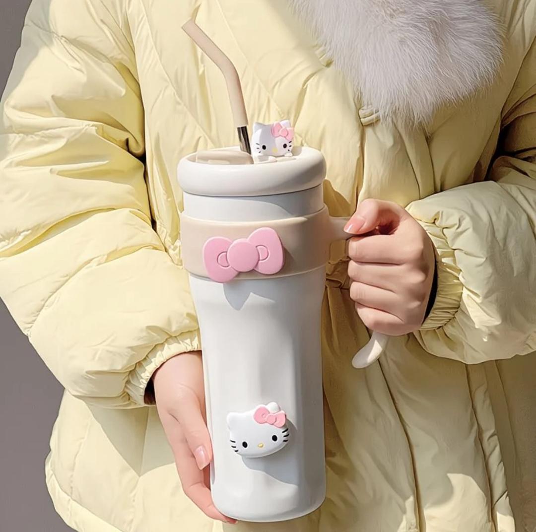 With the Hello Kitty Sanrio Thermal Cup, you can add charm and fun to your everyday routine. This elegantly designed bottle is ideal for travel, the workplace, or school because it combines style and functionality. Its long-lasting use, safety, and durability are guaranteed by its quality stainless steel construction. The cute Hello Kitty design provides a whimsical touch, and its vacuum insulation keeps drinks hot or cold for hours.