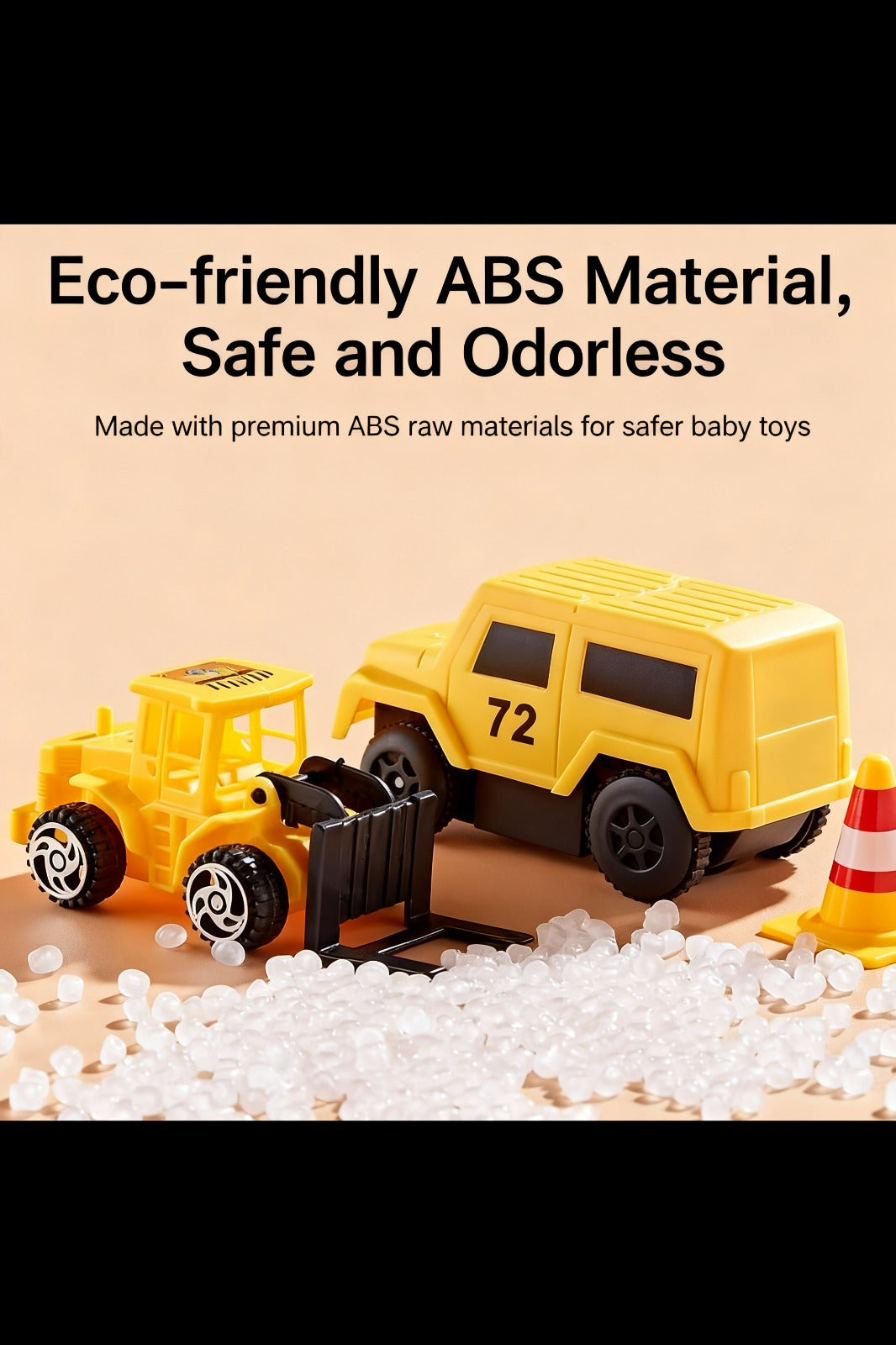 Construction Vehicles: We have 6 different types of construction vehicles.Includes transport truck, excavator, road roller, cement truck and 2 racing cars.The race track for 3 4 5 6 year old boys and girls
