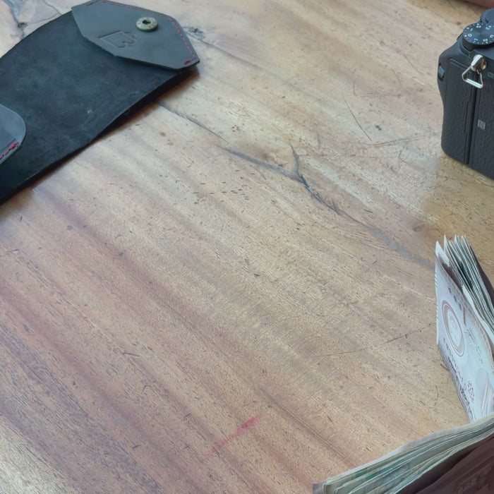 The rich matte black leather finish delivers a timeless aesthetic that never goes out of style. Its versatile look pairs effortlessly with both casual and formal outfits. Over time, the leather develops a unique patina, making each wallet truly one of a kind.